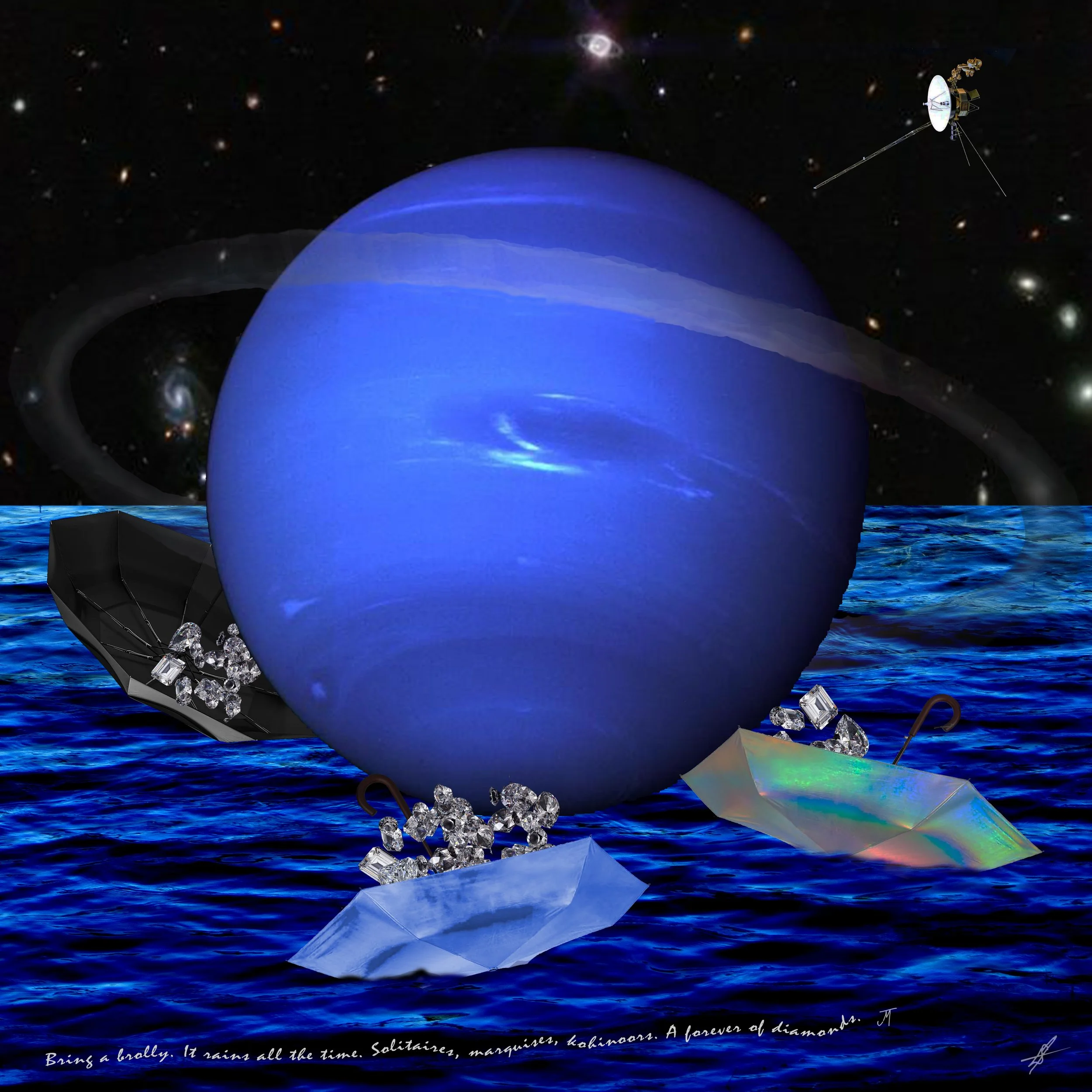 Using aluminum and pigment prints, a touch of neon and LED, with a lot of help from NASA, artist and writer take a small tour of a very large neighborhood. To see what happened. And what happens next.
