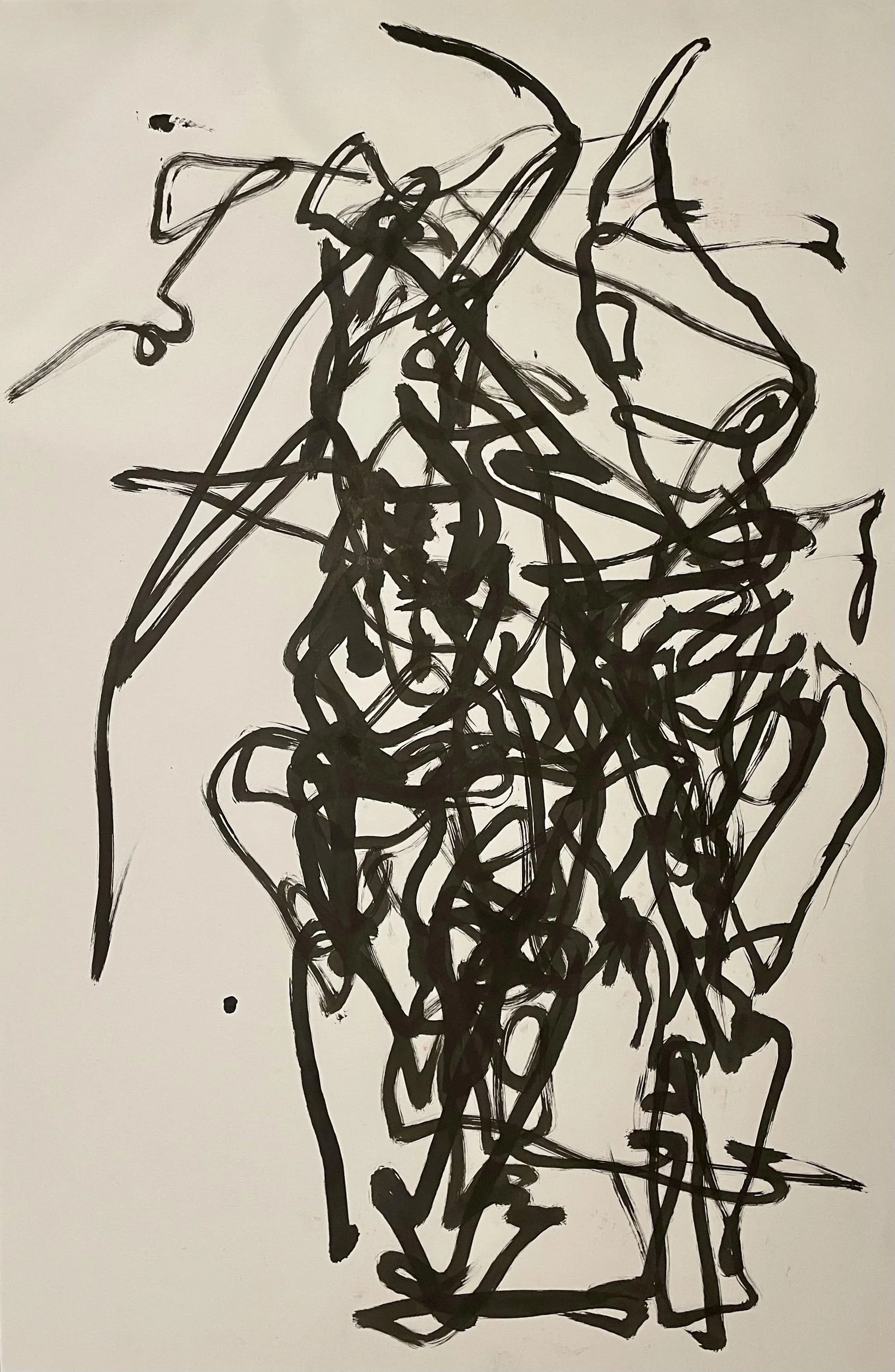 Similar to Hitsuzendo, when I work I aim to be fully in the moment. I, too, use large paper and stand at an easel rather than sit at a table. But unlike Hitsuzendo, emotions are an integral part of the process for me. Each drawing is experiential, the record of its subject through the lens of my intuition at a moment in time.”