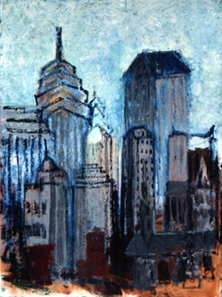 Gordon Binder focuses his artwork on the cities themselves. Luscious drawings and paintings of grand skylines, urban landscapes, iconic buildings, parks, and memorials. He shows his art in individual works that encourage the viewer to focus on one scene at a time.