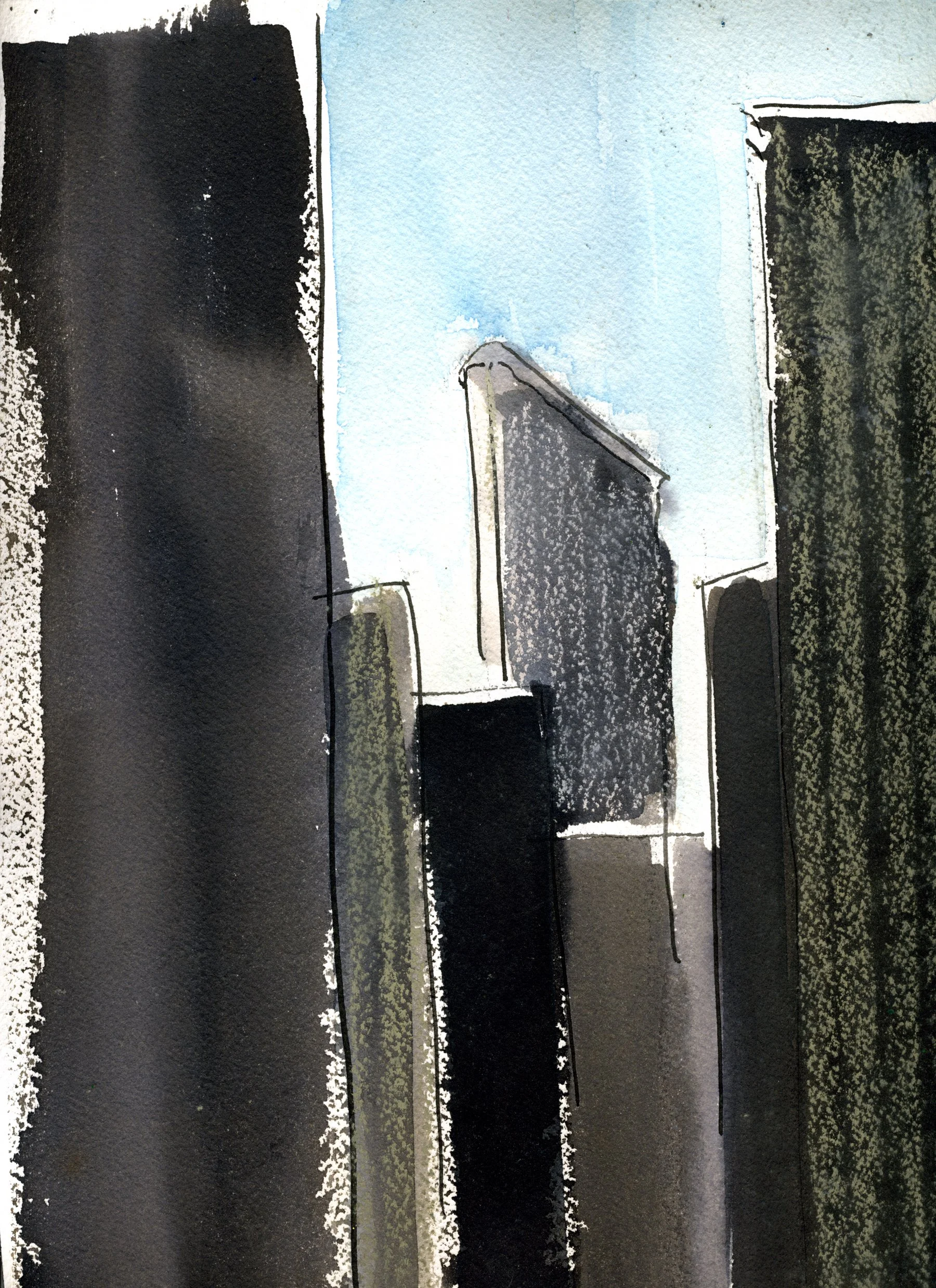 Ink with wash and pastel on paper