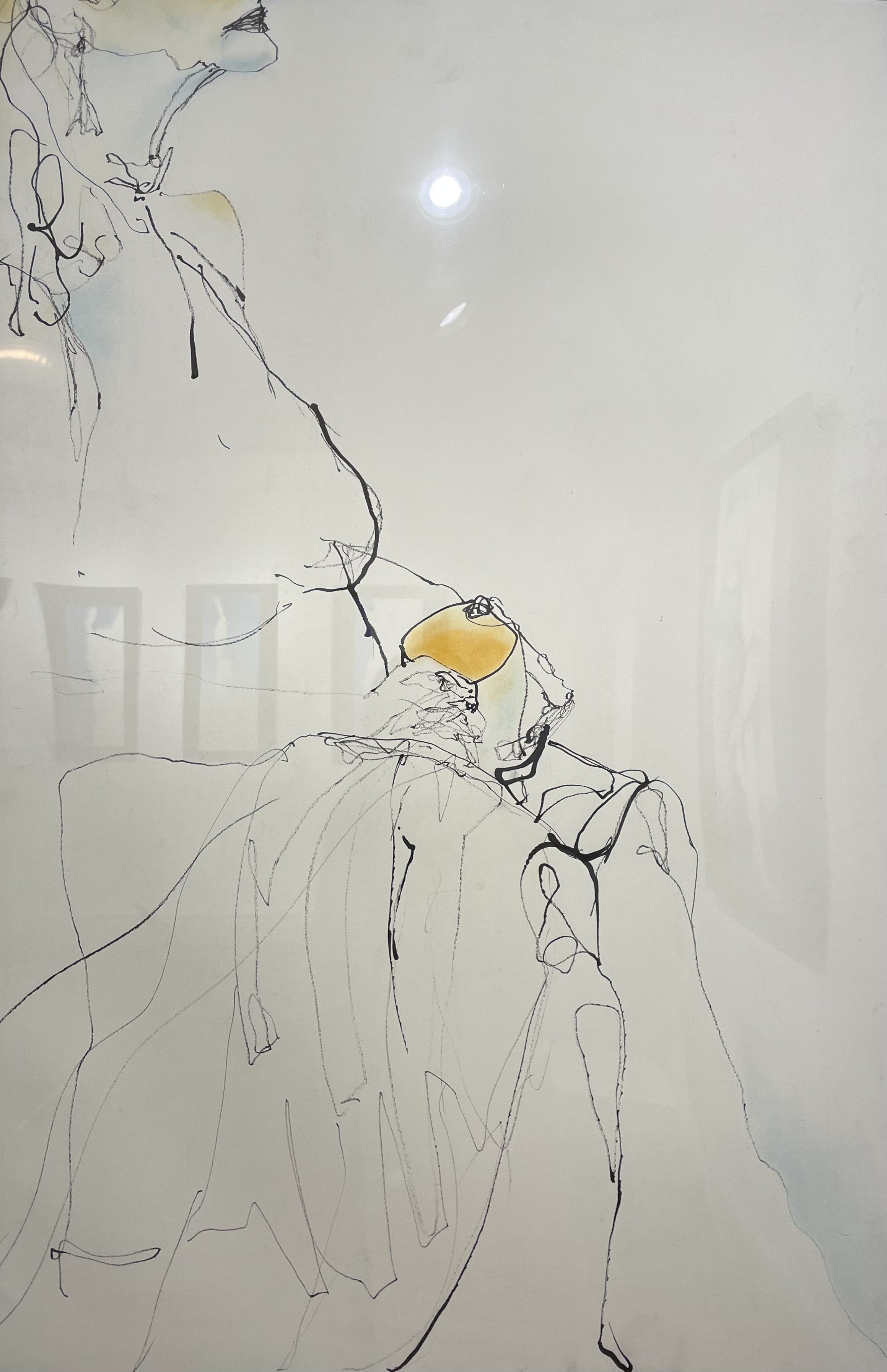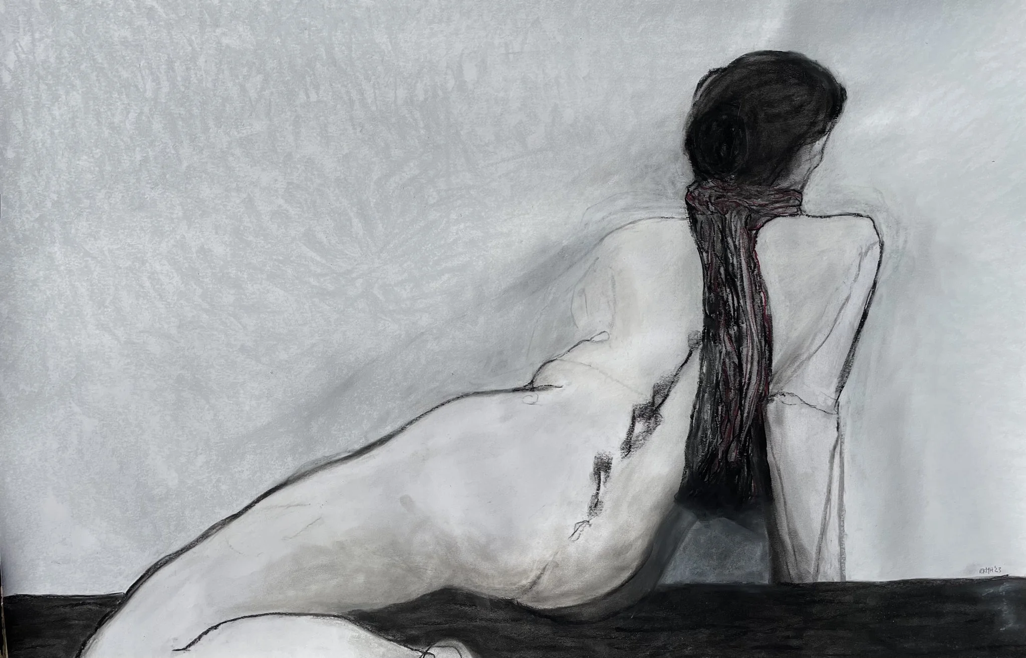 Ink on a Coffee Stirrer: Female figures in ink and charcoal