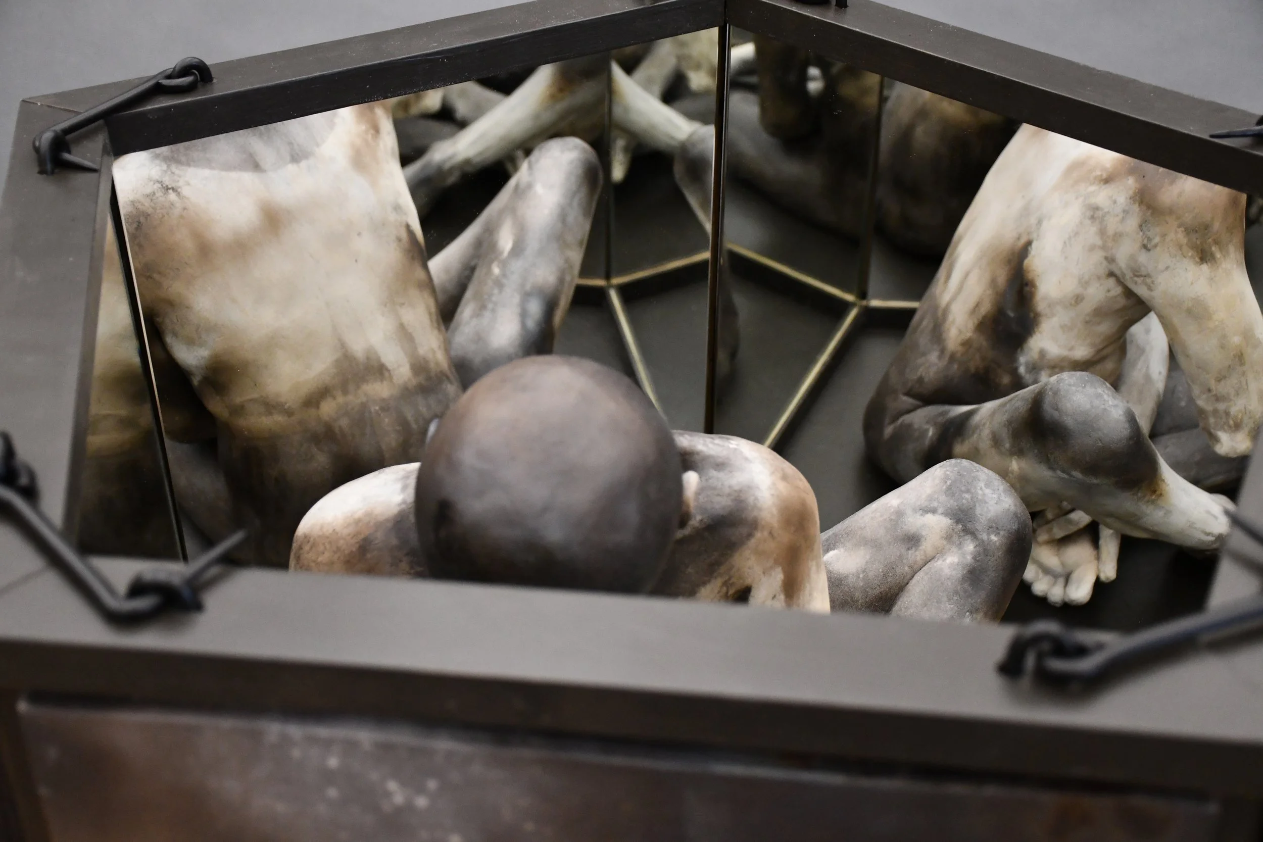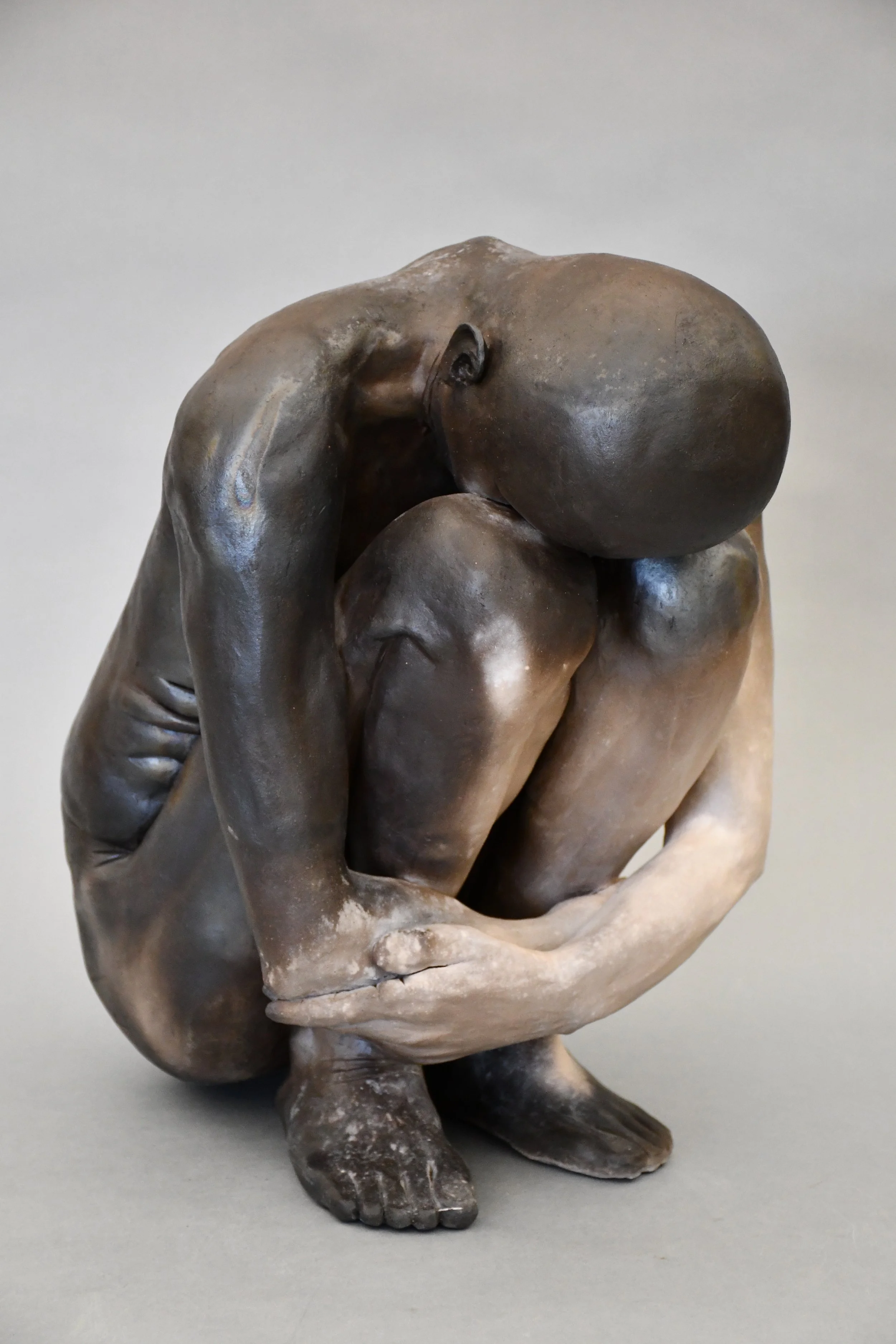 The narrative I found in Chris Corson’s sculptures takes place in The World, Rabbit Hole, Hiding, Into Sunlight, and Up From Brokenness. To me, these sculptures depict one person on a transformative journey. It starts with The World.