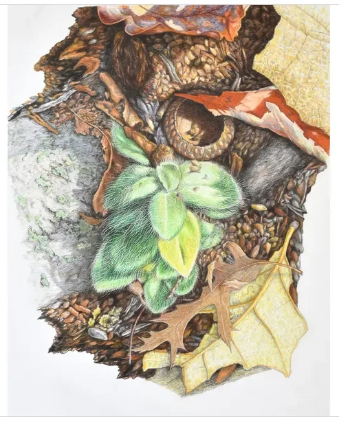 THE NATURAL WORLD CATALOGED as a series of crisp closeups, “A Winter’s Walk” focuses with exquisite precision on berries, leaves, cones, pods, and branches. This Athenaeum show presents the work of 17 members of the Botanical Art Society of the National Capital Region, all of them highly skilled in their chosen media: watercolor, pencil, and colored pencil.