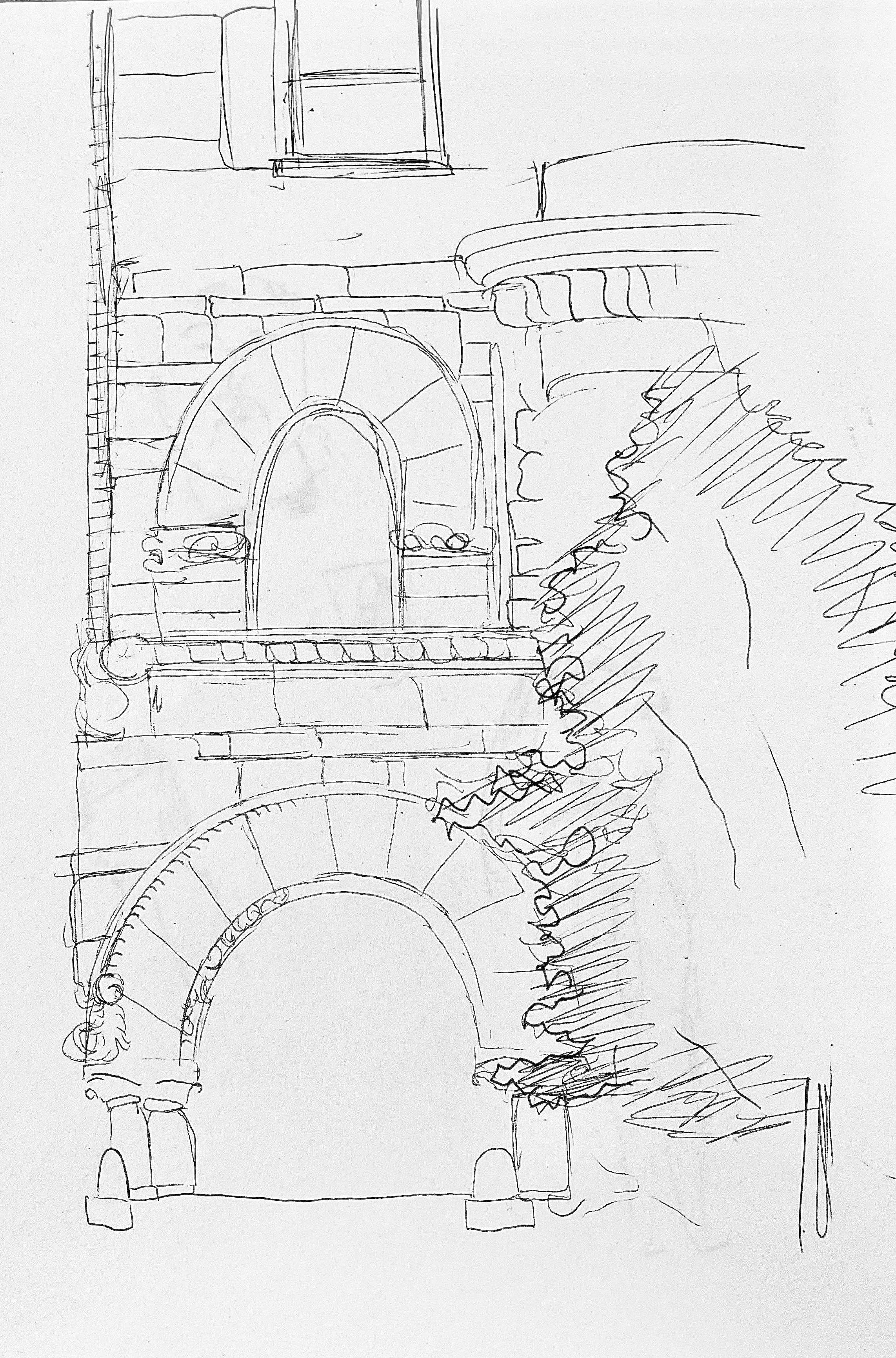 To replicate these colors without paint and just a pencil and paper was difficult. However, I learned a few tricks to replicate his expressive nature, like drawing with only a pen. With a pen I was forced to think less about perspective and accuracy, and more about expression because I didn’t have an option to erase. Here I have a few pieces that I drew inspired by Gordon’s work.