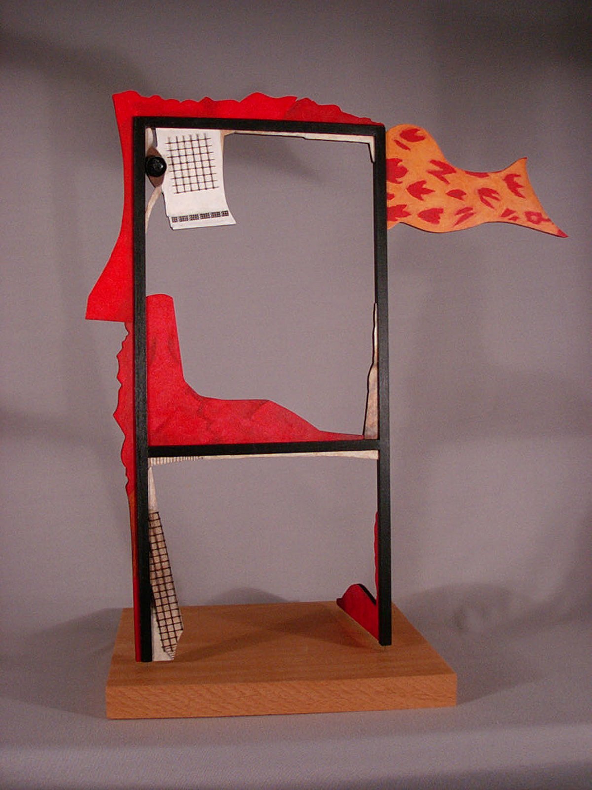 Plexiglass, acrylic paint, and paper mounted on wood panel