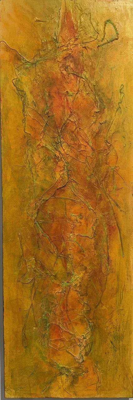 Working with newsprint collages and paints on canvas as well as paper, I explored harmony juxtaposed the explosive tensions, discord and conflict in our world. Gestural lines trace the movement, and energy traversing through figures in a dystopian landscape.