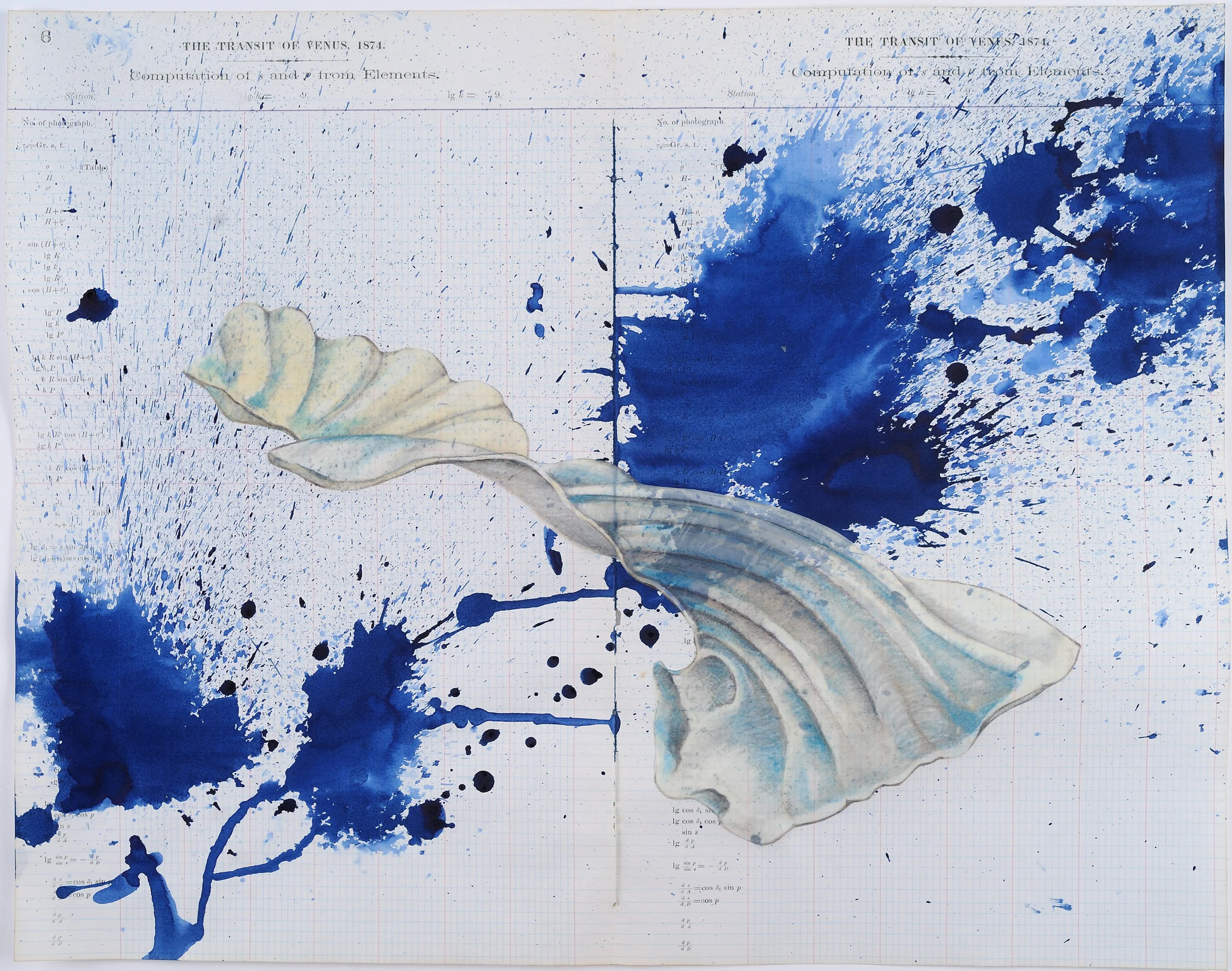 This new body of work originated in a found object: a ledger containing observations of the 1874 Transit of Venus, a phenomenon occurring every 243 years when the planet Venus moves twice across the face of the sun. Astronomers over the centuries have tracked her movements , dating back 5000 years ago to the Sumerians, and seen her as divine.