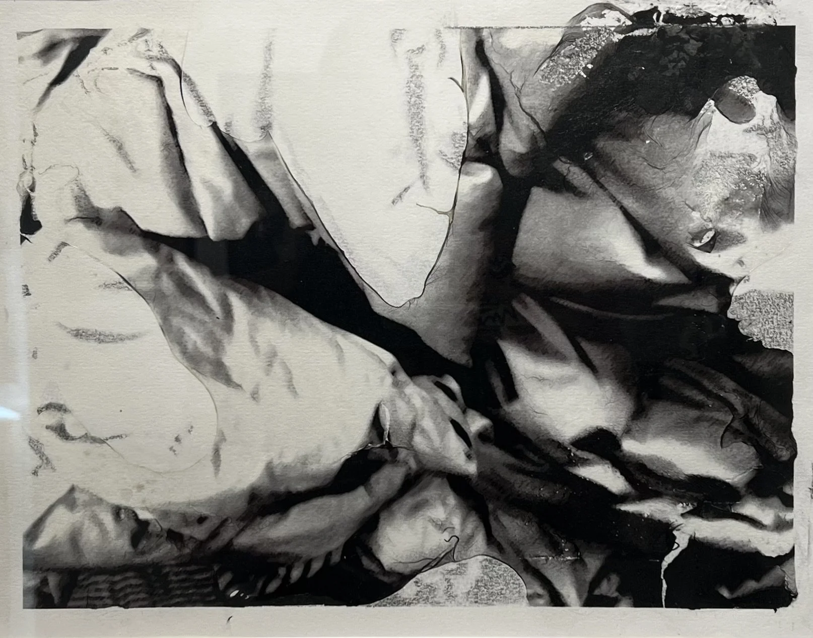 Manipulated photo transfer, charcoal, graphite
