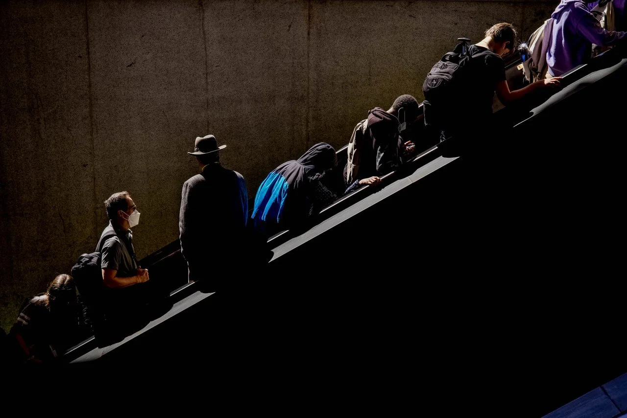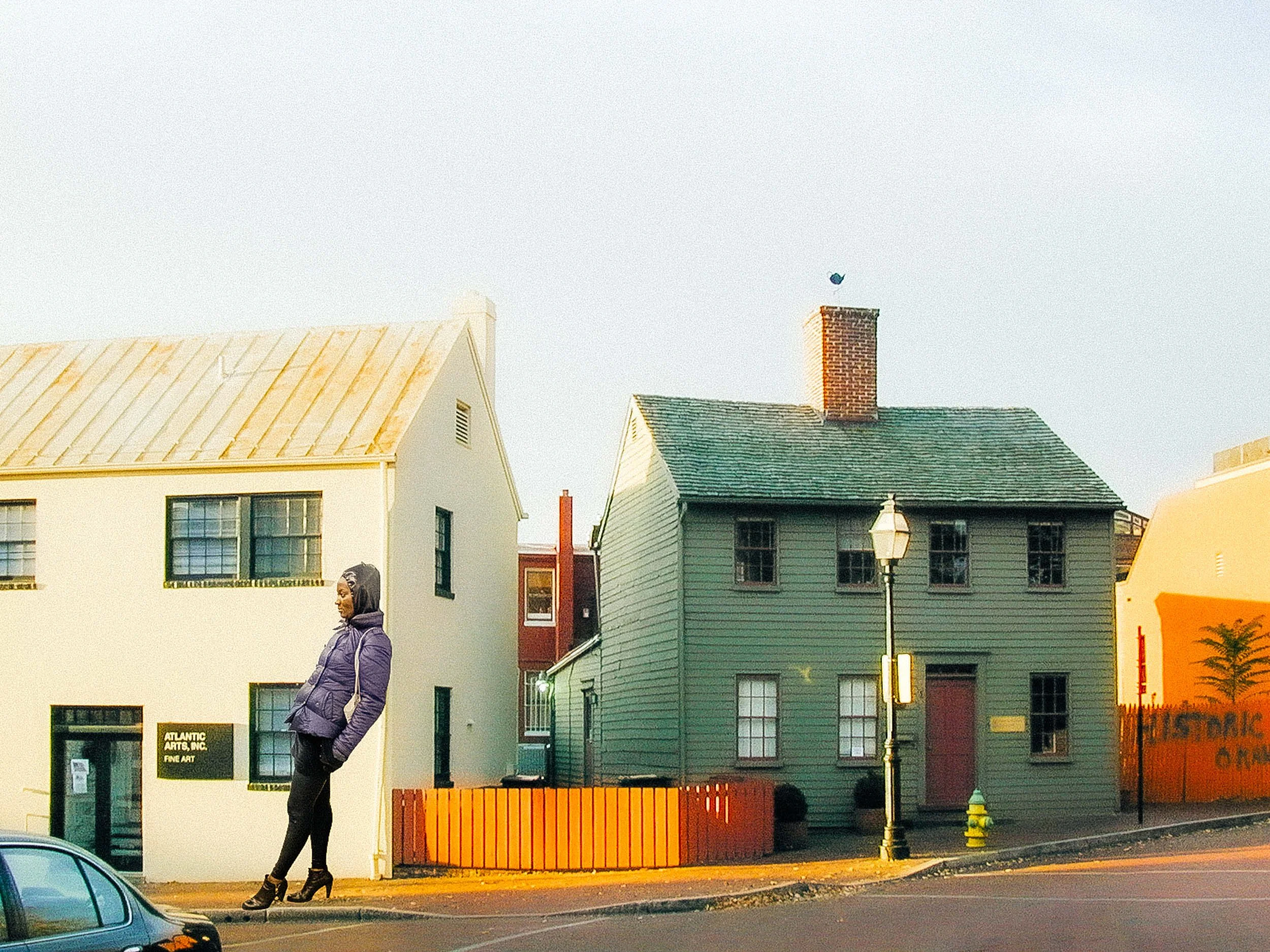These pictures, drawn from my current book project Dream Streets, are singular moments, snatched from time, that share a glimpse of the Eternal. Through their narrative resonances, they offer a visual means to bridge the metaphysical chasm between the two cosmos, micro and macro. By exploring public places and quotidian life (ie, yours and mine), the uncanny connections between people, both friends and strangers, I search for the visual surprise, how a particular photographic intersection of space and time, when placed in the proper context, can tell a much bigger, and more emotional, story. Put another way, I believe concrete and particular combinations of subject matter, light, color, space, gesture, and movement have the power to project the universal. Pictures may be hard and realistic, or abstract and surreal. In either case, the successful ones reveal the essence of things, in all their beauty, grace, and mystery.