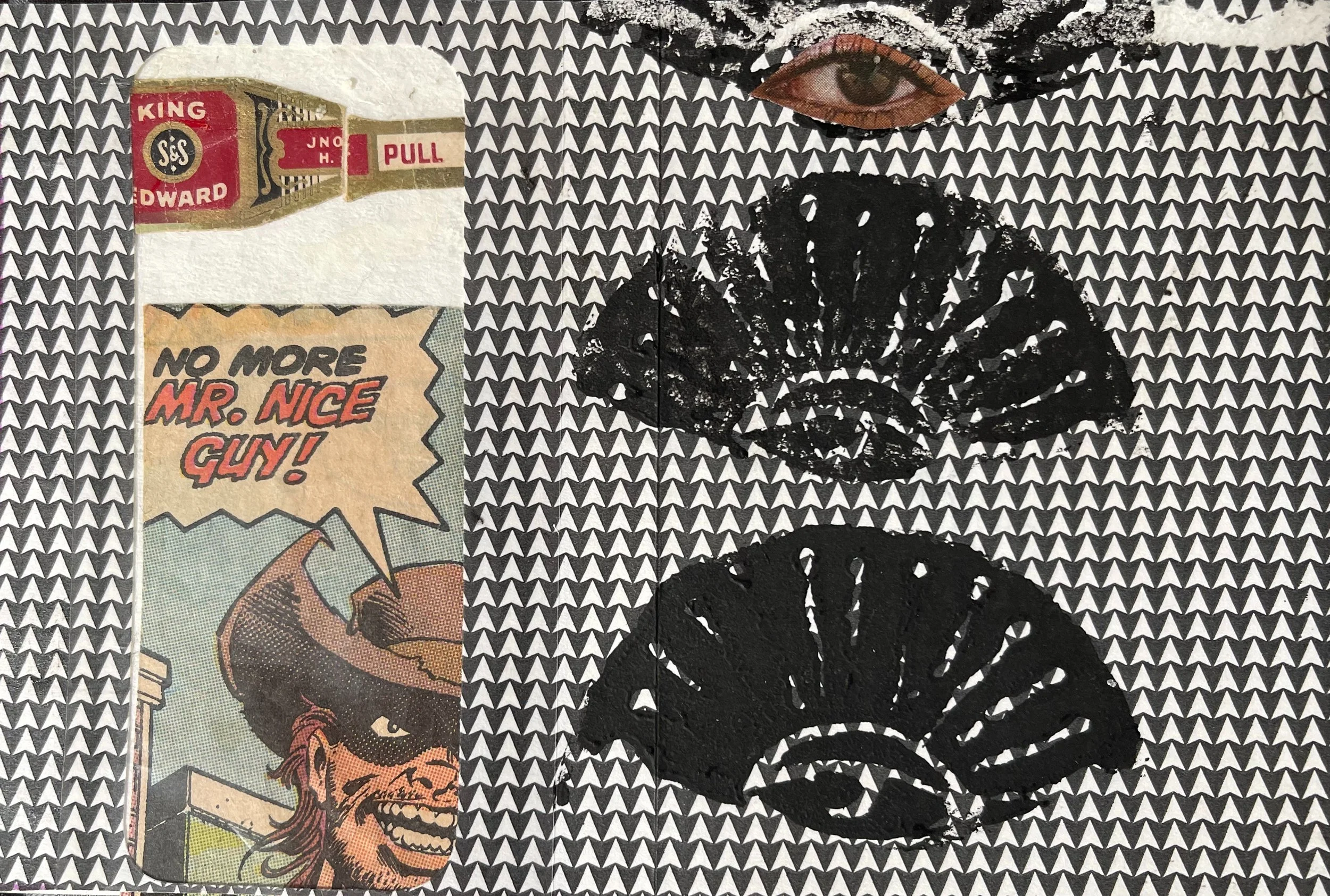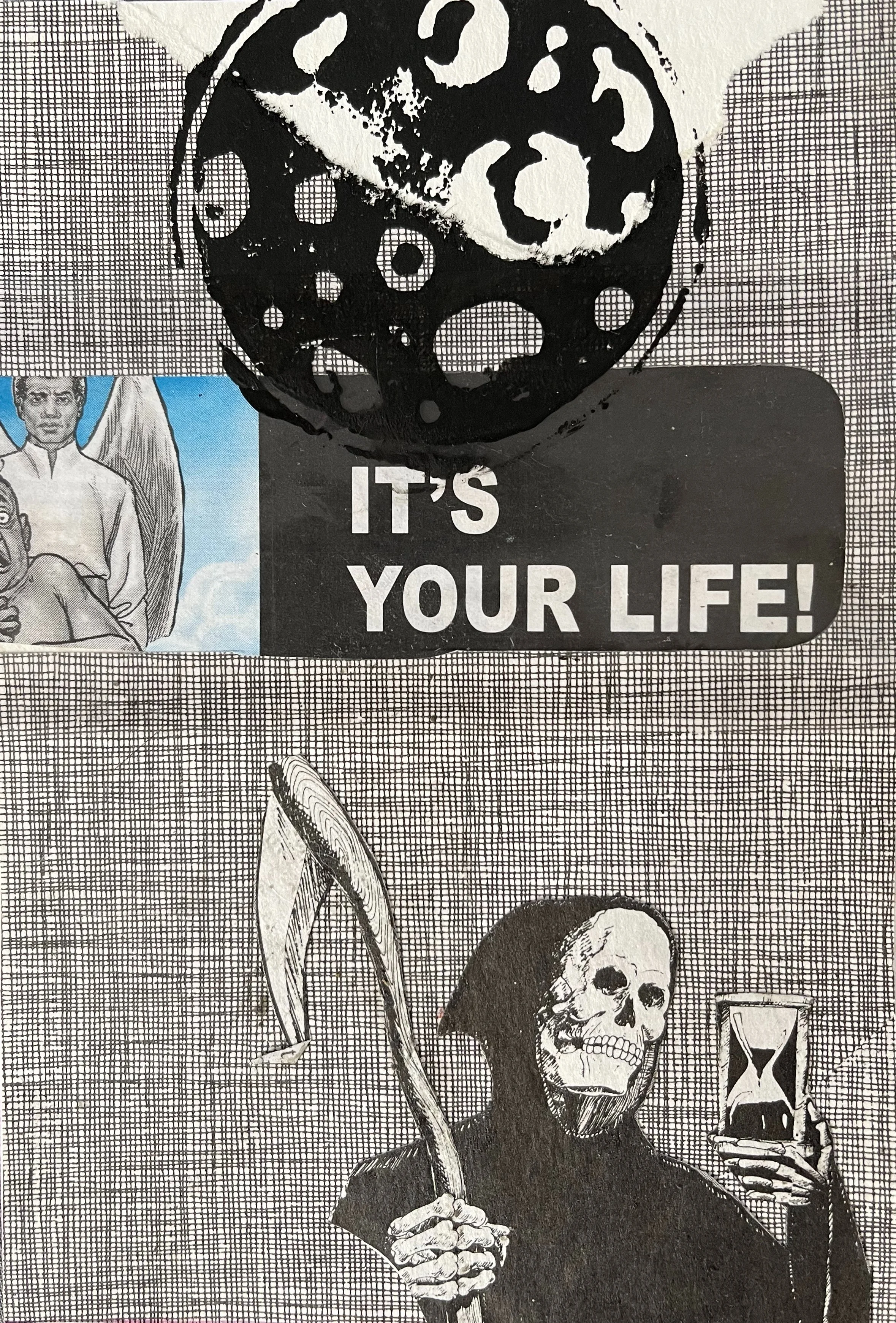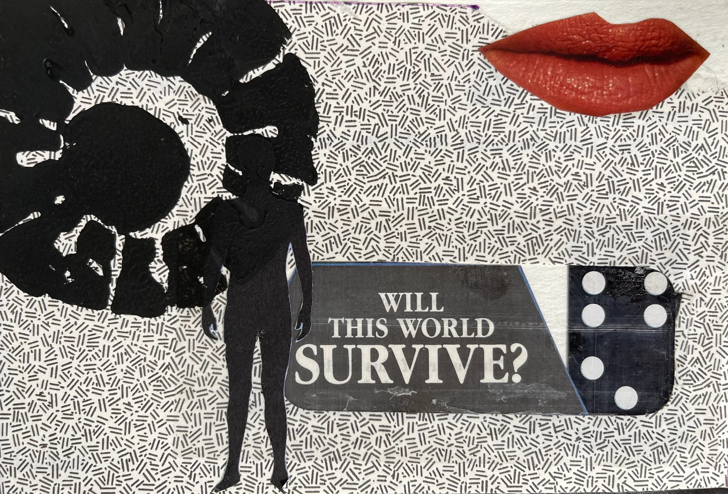 This painting is inspired by Ikiru, the classic film by Akira Kurosawa. It depicts a man pensively contemplating things that are worth fighting for, things that give joy that offsets the awfulness for which humanity is also responsible. -Iza Thomas