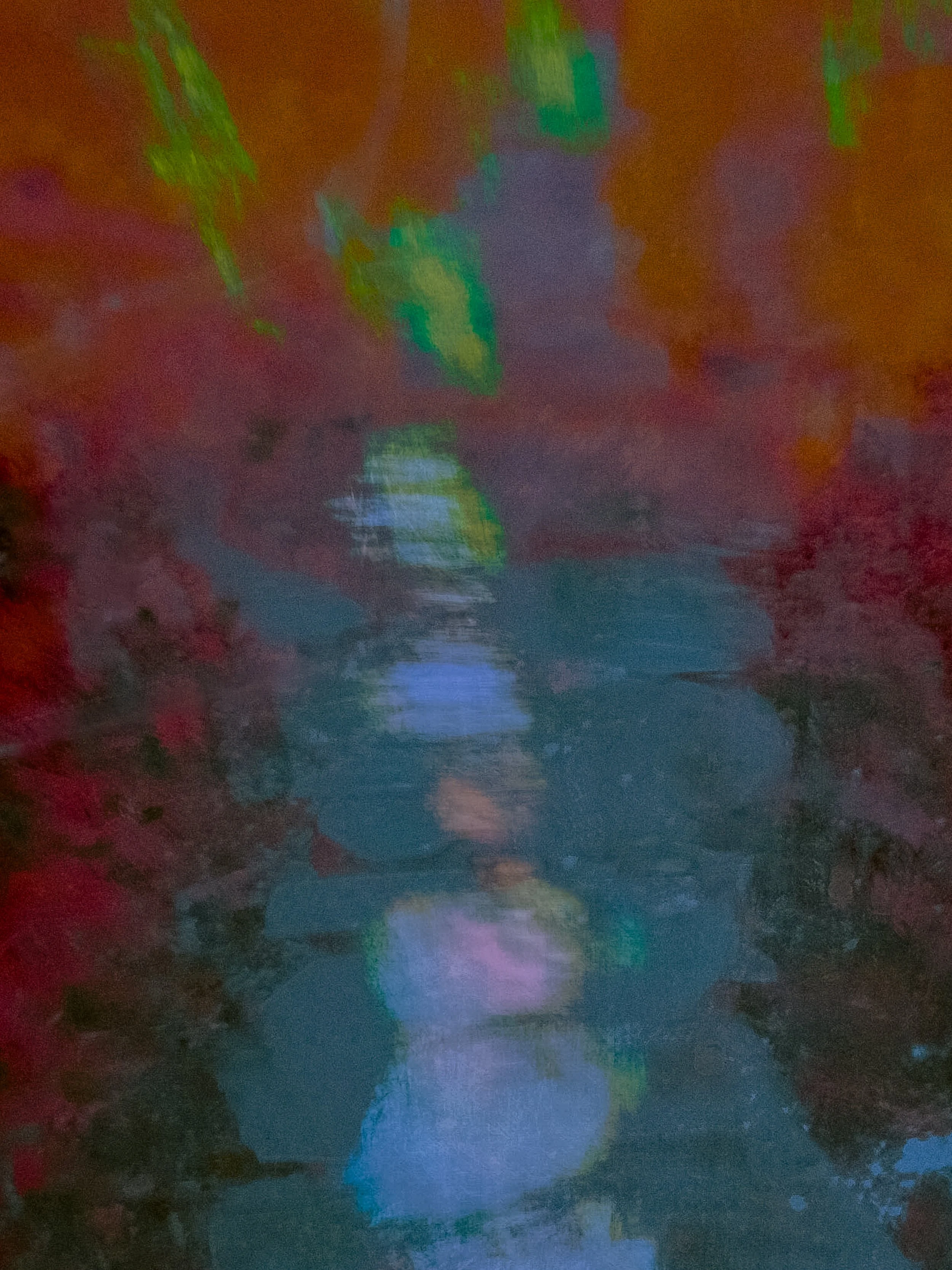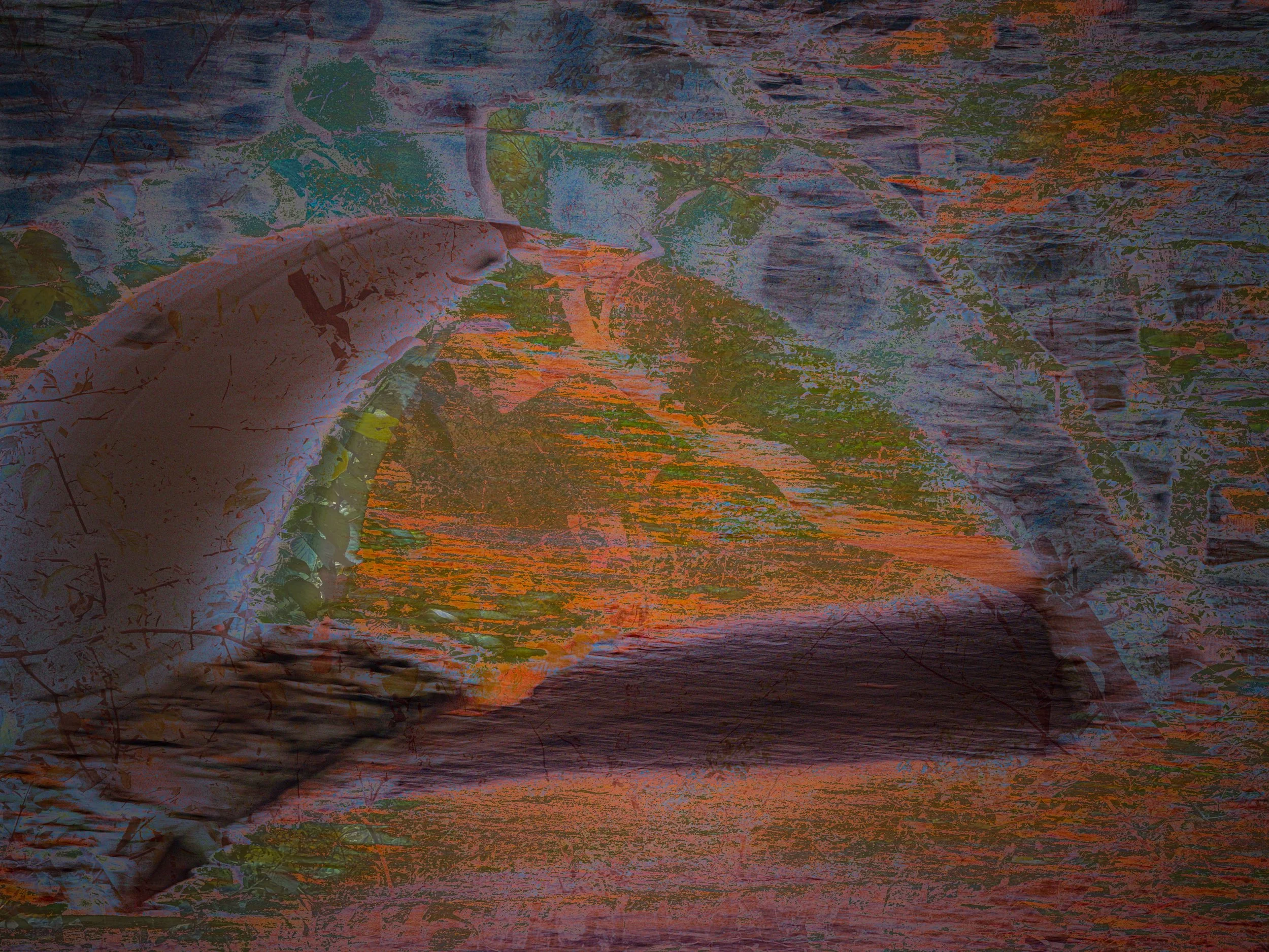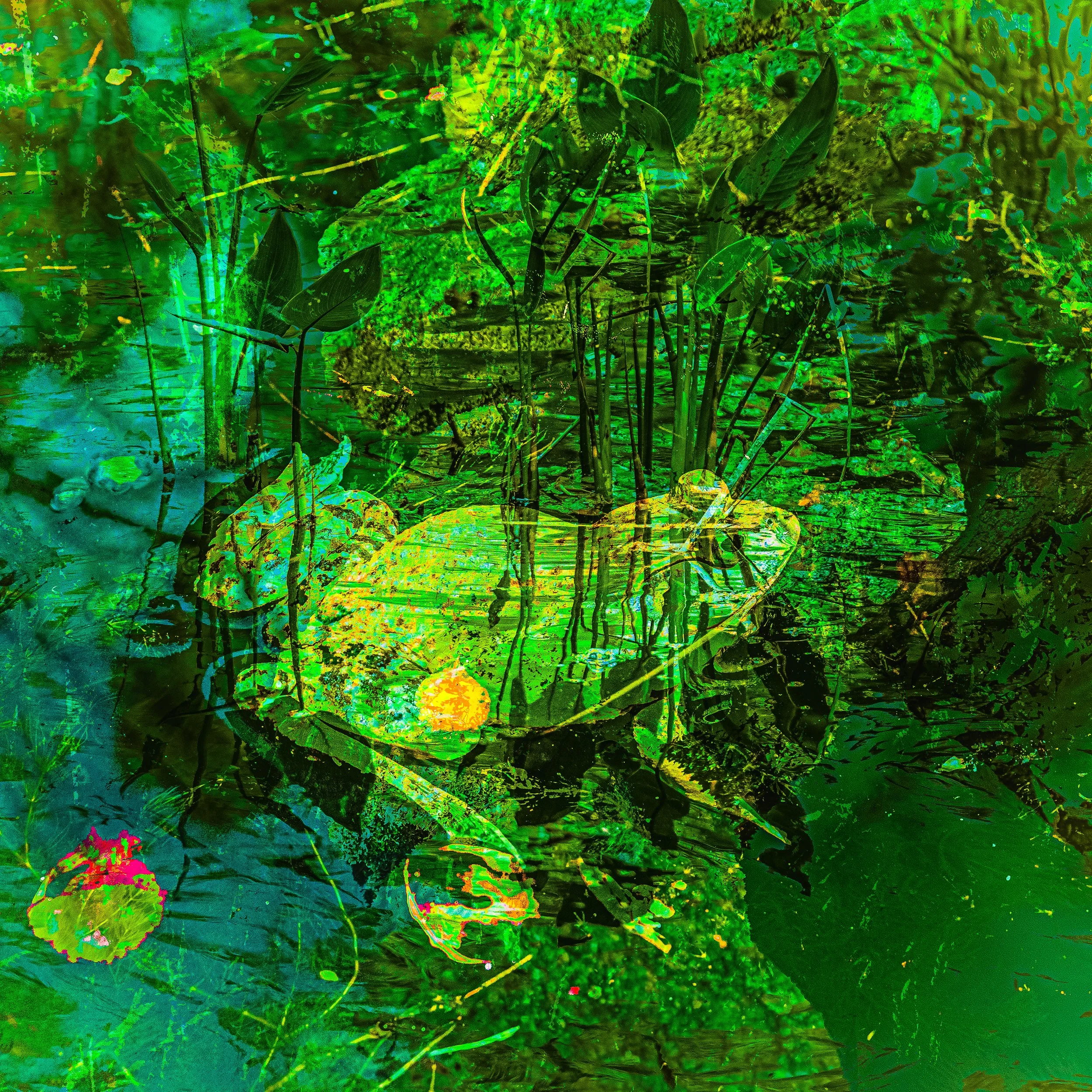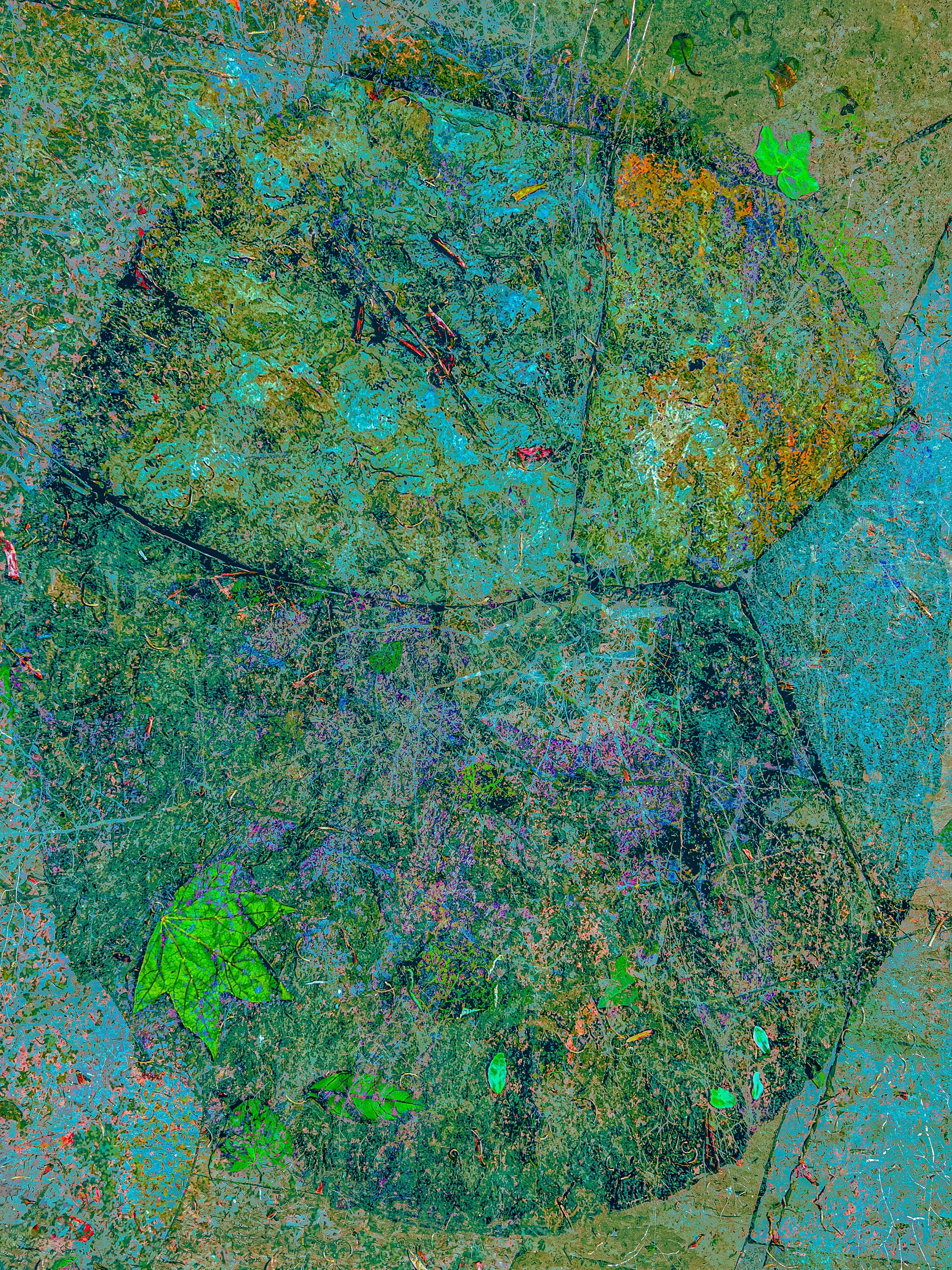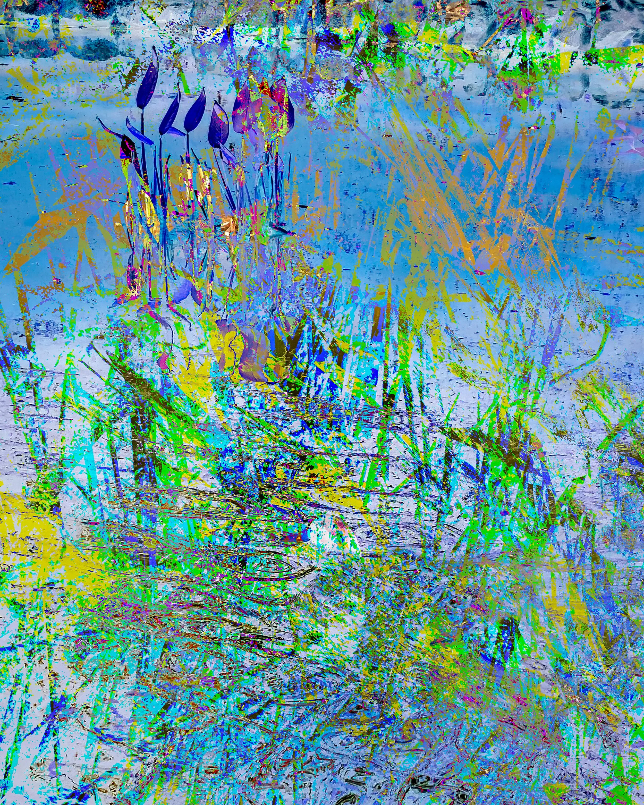 Transitions was inspired by walks in the Tregaron Conservancy, 13 acres of protected parkland in the heart of the city. After several years of COVID-induced restrictions and uncertainties, it’s time to linger near the lily pond to be restored and re-centered alongside the aquatic plants, bullfrogs, goldfish, ducks and more than an occasional water snake. The underlying theme is a retreat, a quiet reflection, an invitation to “Be Still.” My new work uses figurative abstraction or abstract fantasy to depict my response to a particular time or place. Rather than reproducing what the lens sees, I exaggerate, romanticize, and fantasize in my interpretations to convey what, for me, lies between reality and abstraction. The digital collages result from a combination of intentional decisions and chance effects. It’s an iterative process of combining, blending, and adjusting which includes a good dose of serendipity.