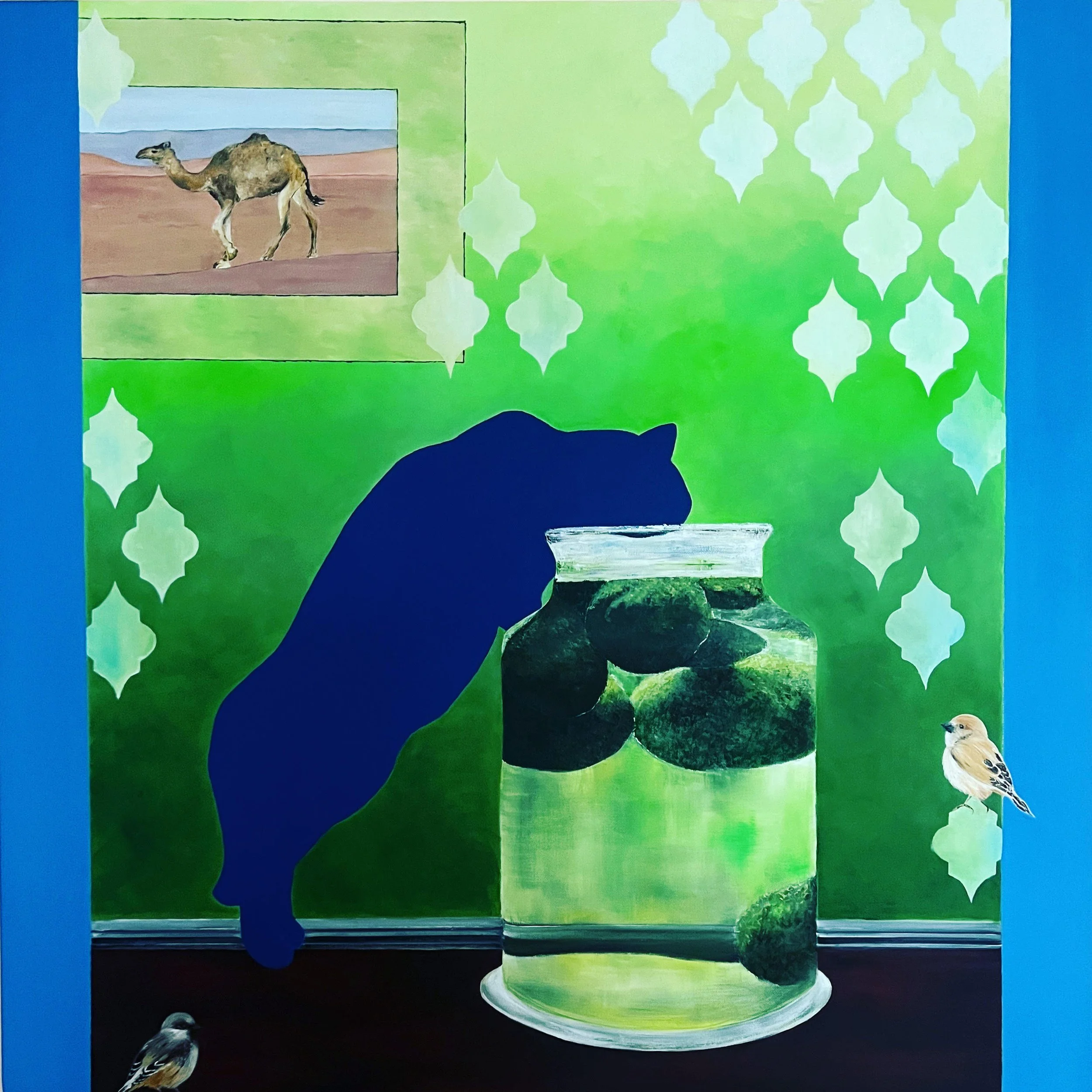 Iqbal draws her inspiration from our shifting world landscape and current events. A newspaper headline, a line from a poem, or a book are all reasons for her to pick up her brush. Her paintings celebrate the connectedness and interdependence of human beings and nature against a backdrop of political and social complexities and tensions of our time.