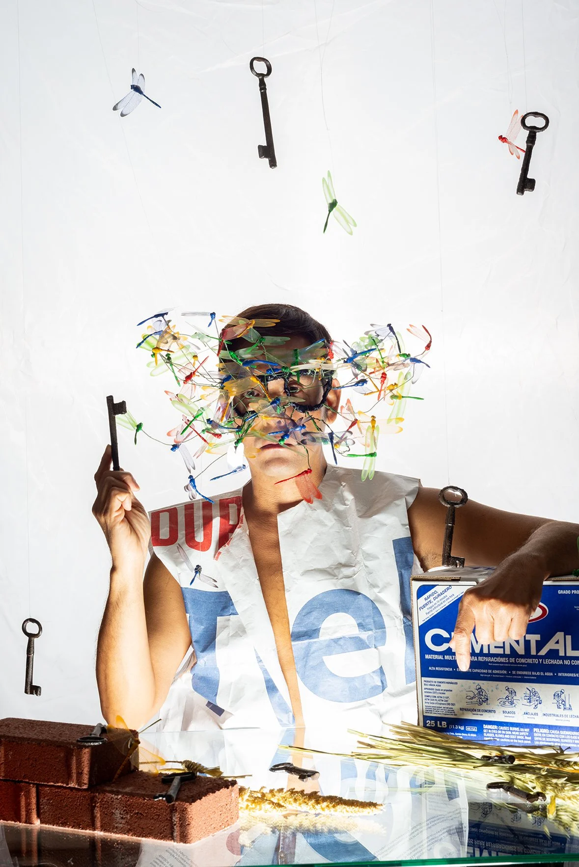 kaleidoscope of butterflies and dragonflies appears, invisible.