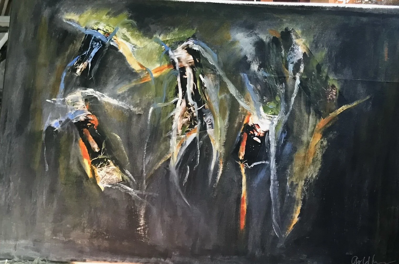 I recently have been exploring themes of mortality through the use of a saturated color palette. These intense hues push the boundaries of my artistic comfort zone, transforming decay into a vivid, surreal experience.