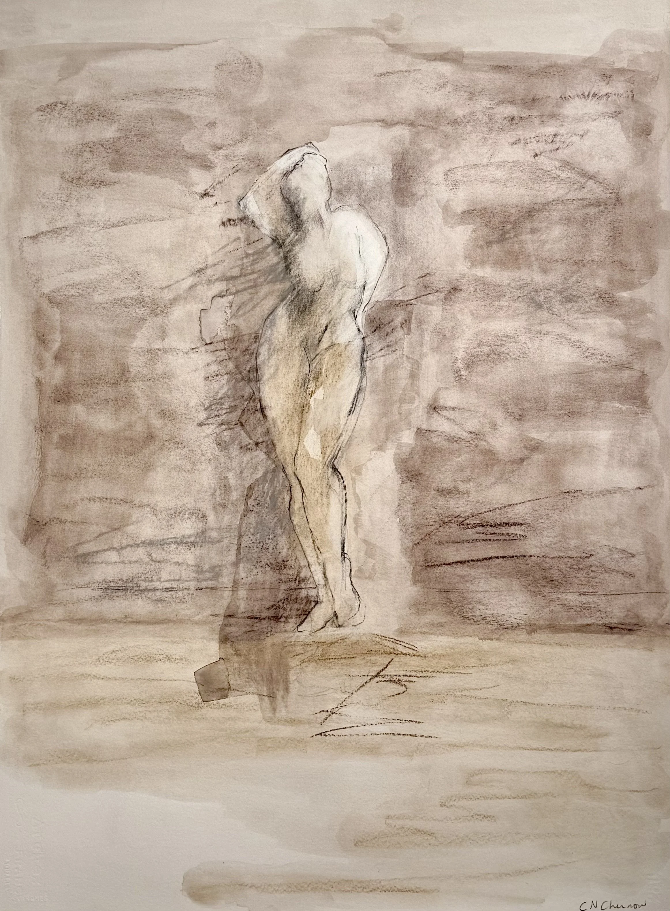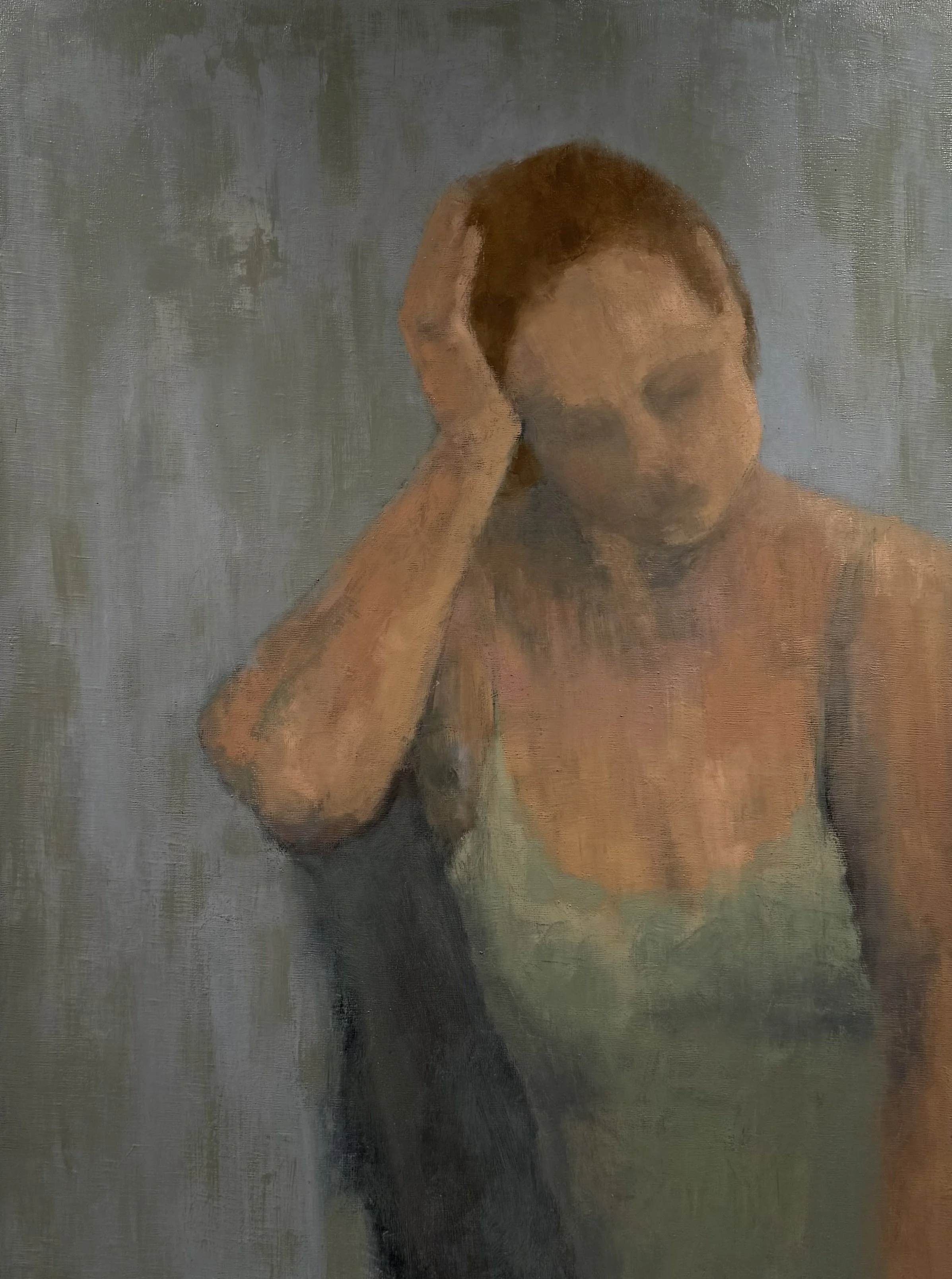 The works on paper are rendered in traditional materials—vine charcoal, graphite, water-soluble graphite, and watercolor - while the drawings on linen incorporate similar media, with the addition of acrylic ink in one piece. These drawings often blur the line between drawing and painting, their layered washes intentionally suggesting painterly attributes. The oil paintings, created on both canvas and linen, continue this study of serenity and subtle emotion. Each piece evolved slowly, requiring patience and a willingness to abandon preconceptions. “I sought intimate moments to create paintings and drawings that produce a sense of calm in our chaotic world,” says Chernow. “I hope you enjoy this intimate look into quieter moments.”