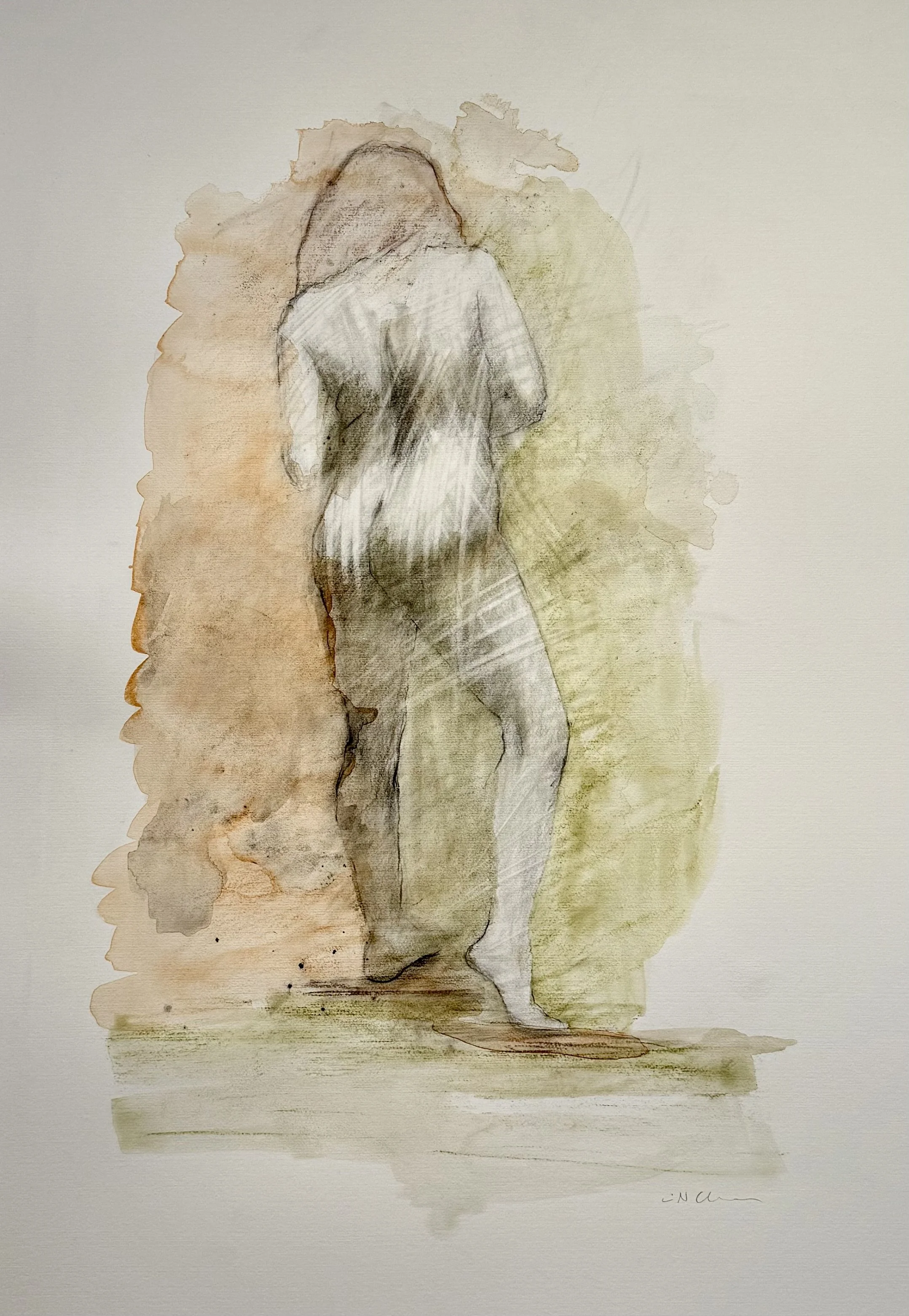 Vine charcoal, graphite, water-soluble graphite and watercolor on linen