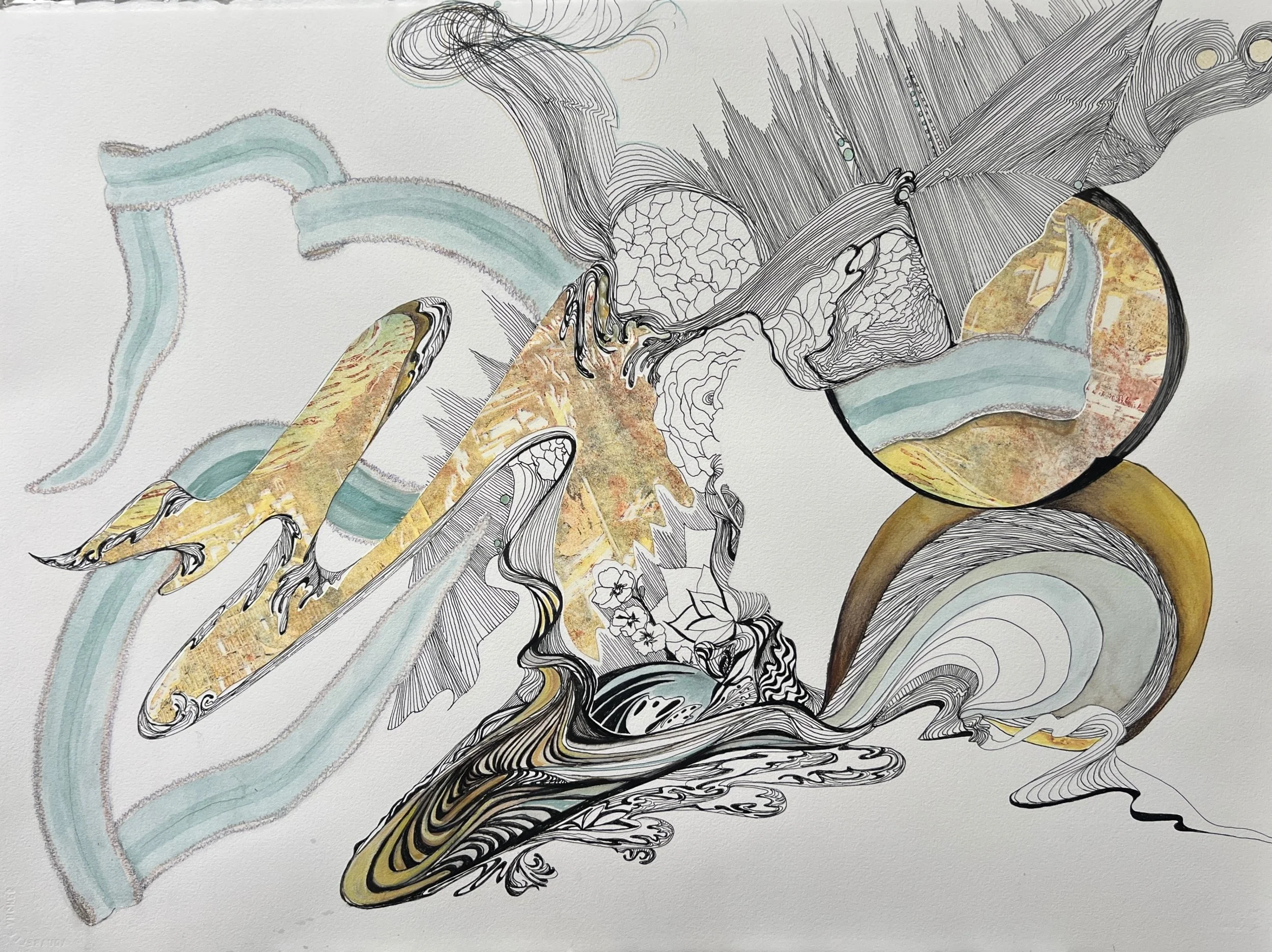 Chris Chernow, Beth Curren and Carolee Jakes collaborated on three works. Each artist took a turn on each piece.